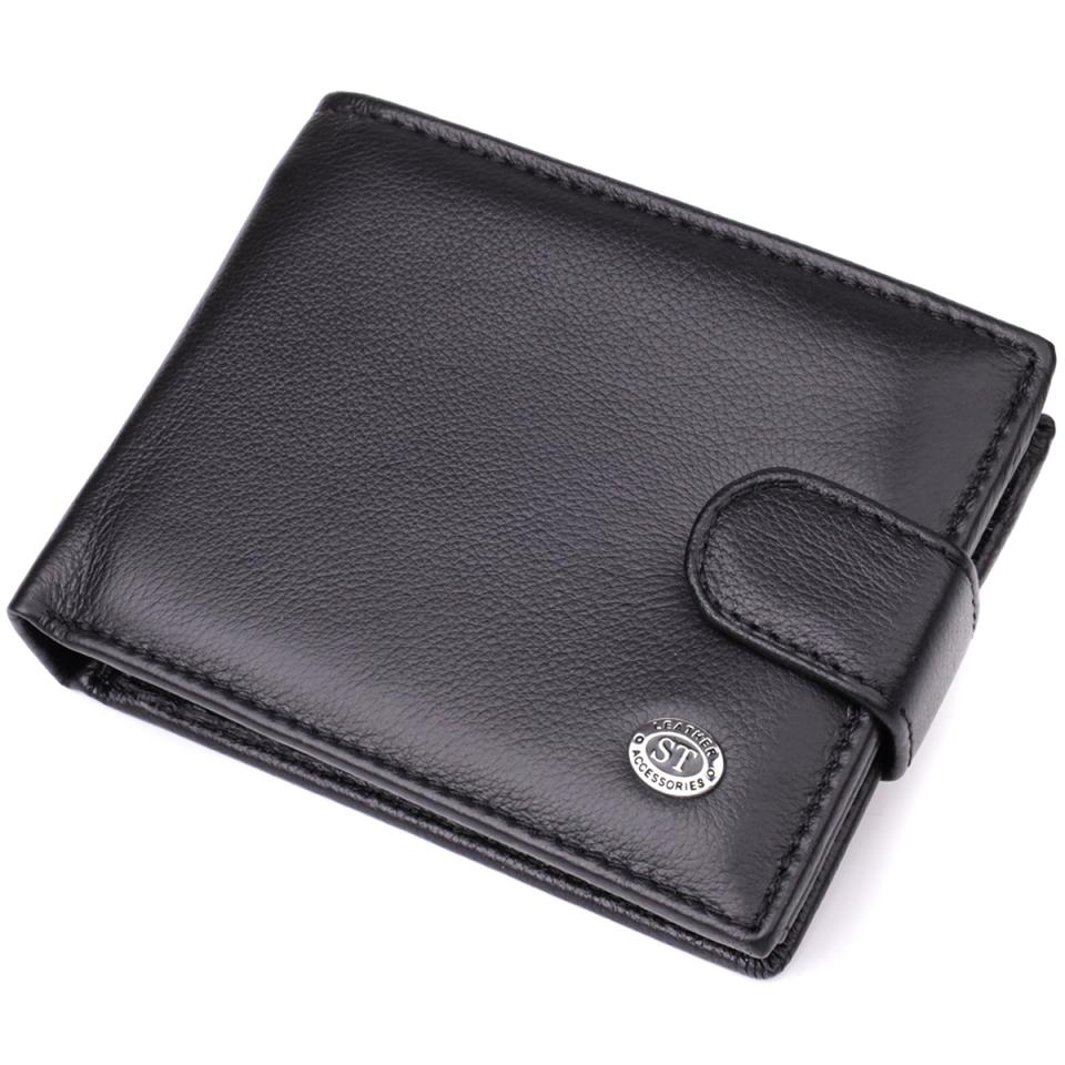Вместительный мужской бумажник горизонтального формата из натуральной кожи ST Leather 23090 Черный