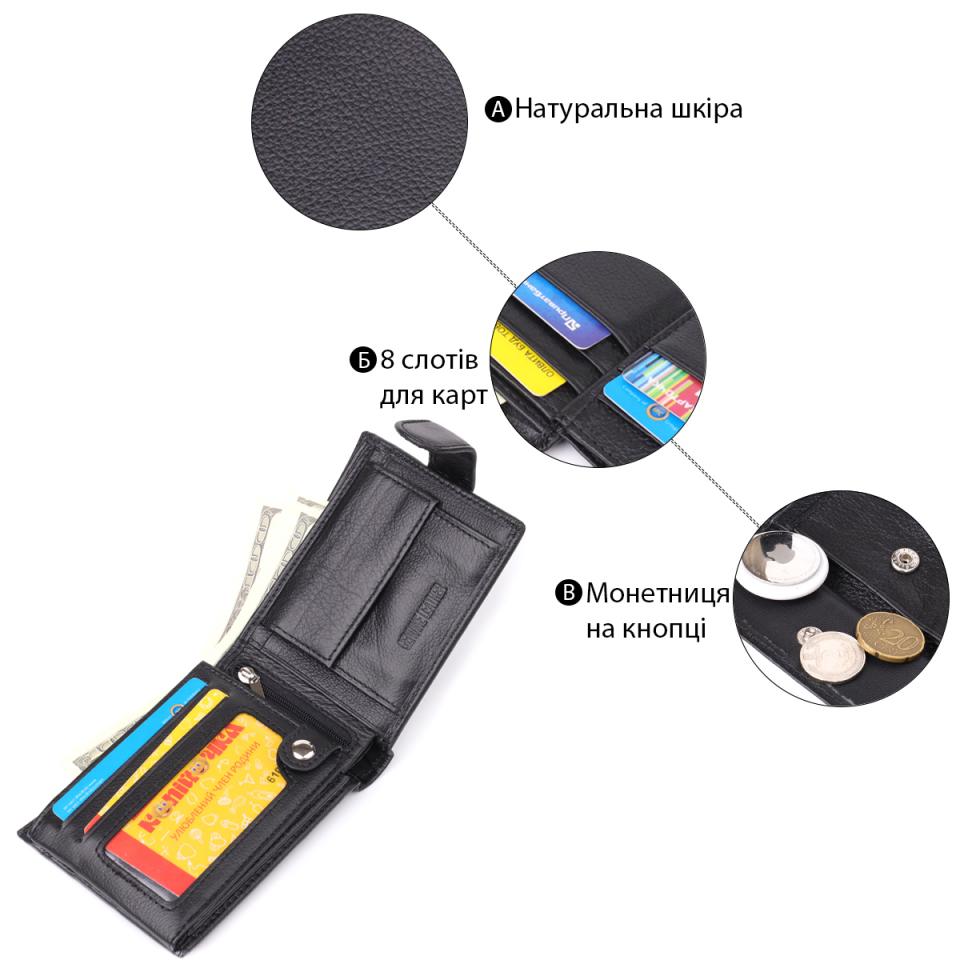 Характеристики: Вместительный мужской бумажник горизонтального формата из натуральной кожи ST Leather 23090 Черный