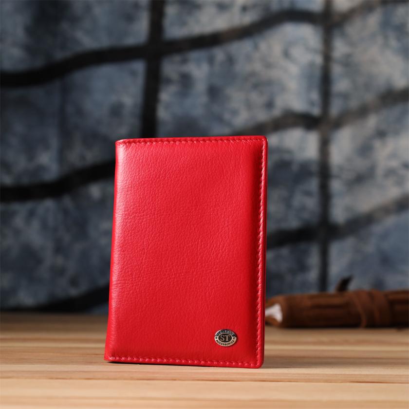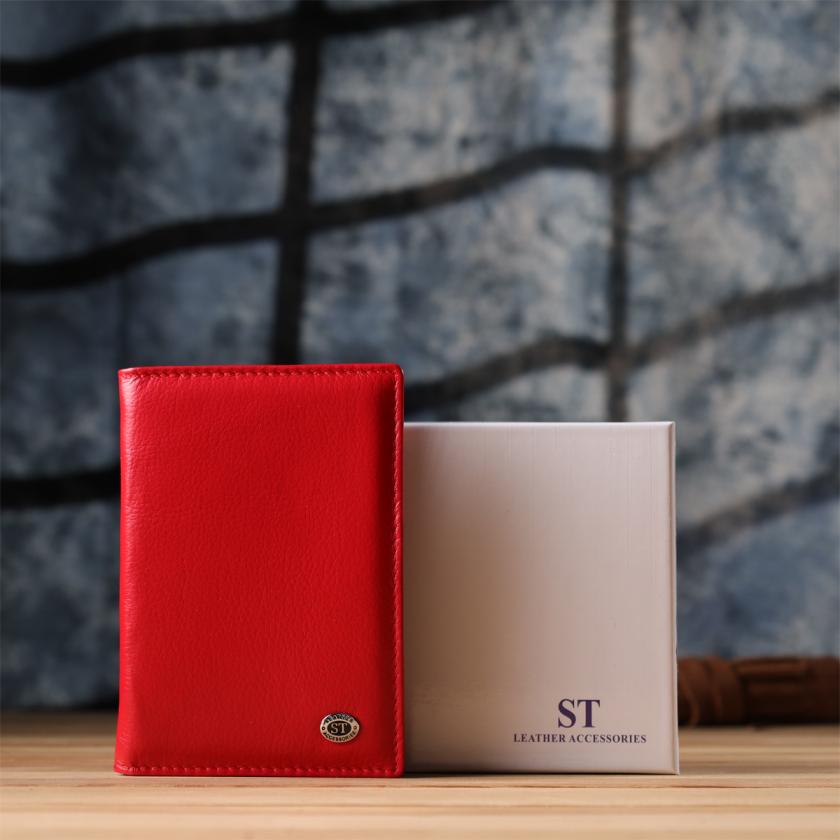 Характеристики: Яркая обложка на паспорт универсального формата из натуральной кожи ST Leather 23080 Красный