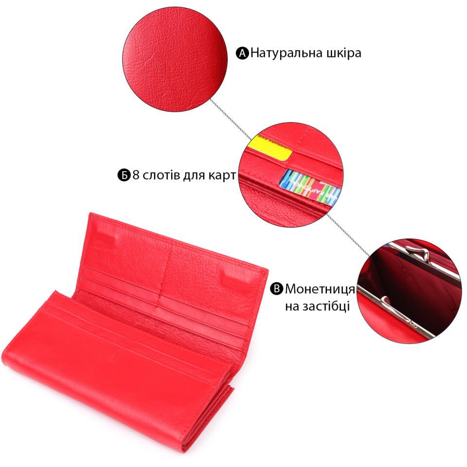 Характеристики: Яркий женский кошелек на магнитах из натуральной кожи ST Leather 23114 Красный