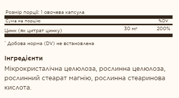 Опис: Zinc Citrate 30mg - 100 vcaps