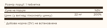 Опис: Zinc Picolinate 22 mg - 100 tab